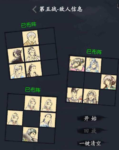 二阵:展昭+岢恶+海棠+符小伏+殷悠悠敌方回血能力较强,选择用全刀阵容最大输出上个唐轻乐可以先压一手控制