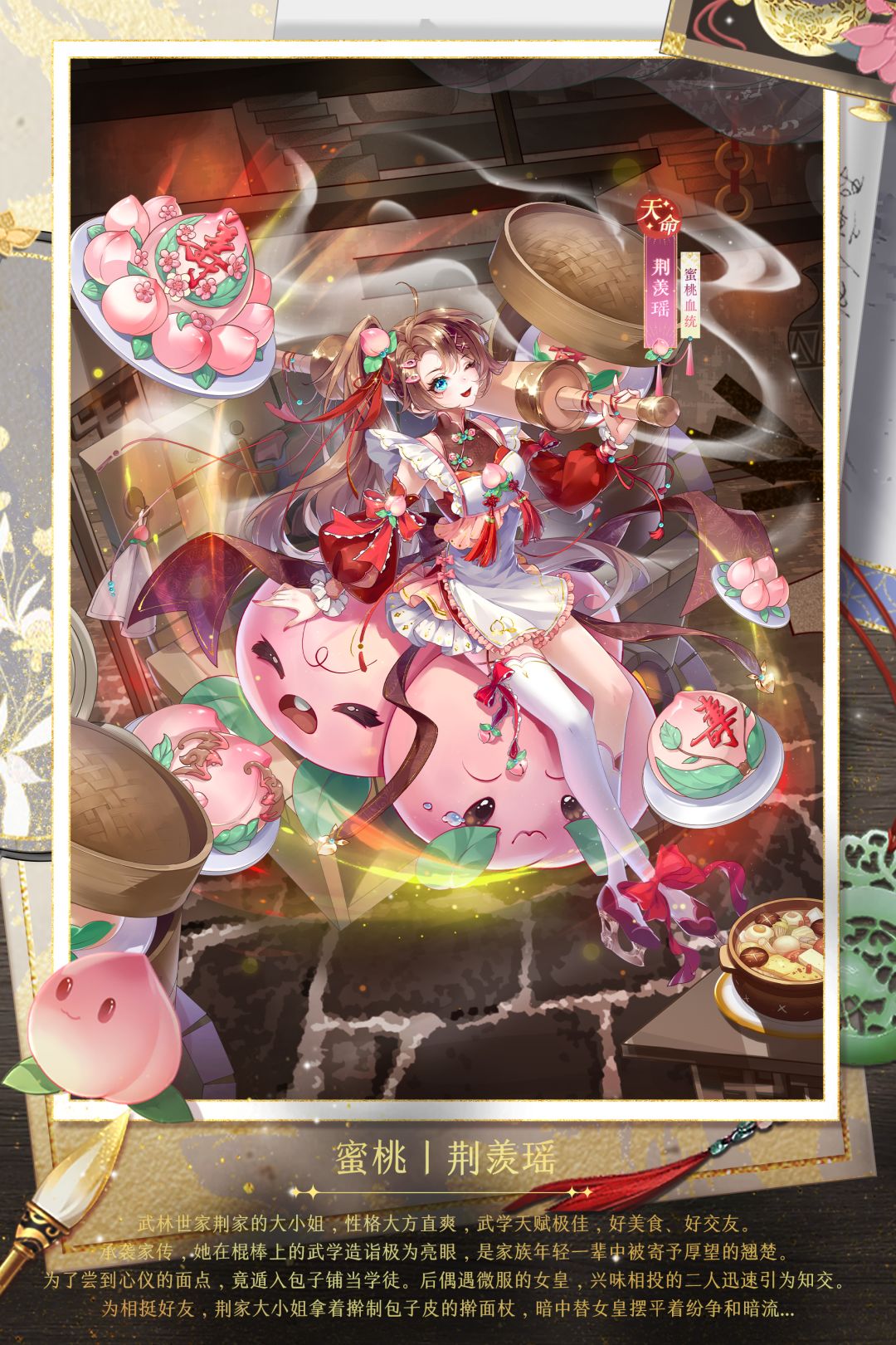 1、12月6日00:00至12月12日23:59期间,参与“上凰蟠桃盛会”活动,即可有机会获得蜜桃血统天命侍从“荆羡瑶”及其信物“擀面杖”、蜜桃血统国士侍从“荆羡琅”及其信物“芳菲散”