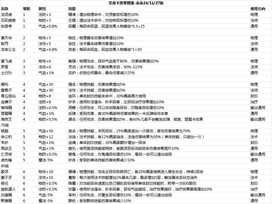 ▲所有卡片属性技能图鉴(更新到24/11/27版本)