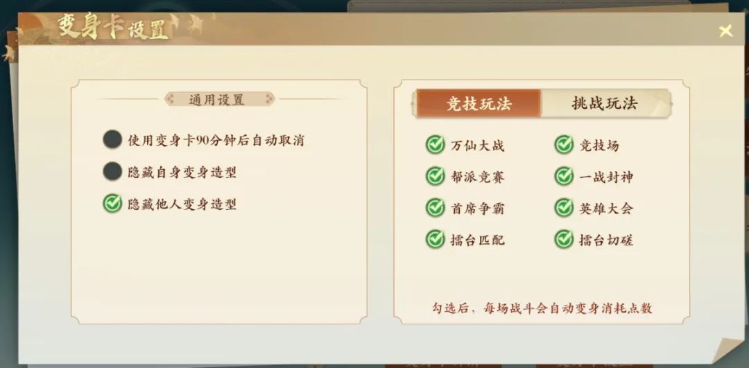 消耗:竞技场景使用每场战斗消耗10点,挑战场景使用每场战斗消耗1点,消耗完卡片消失注意:具体哪些是竞技场景,哪些是挑战场景可以在变身卡设置中查看