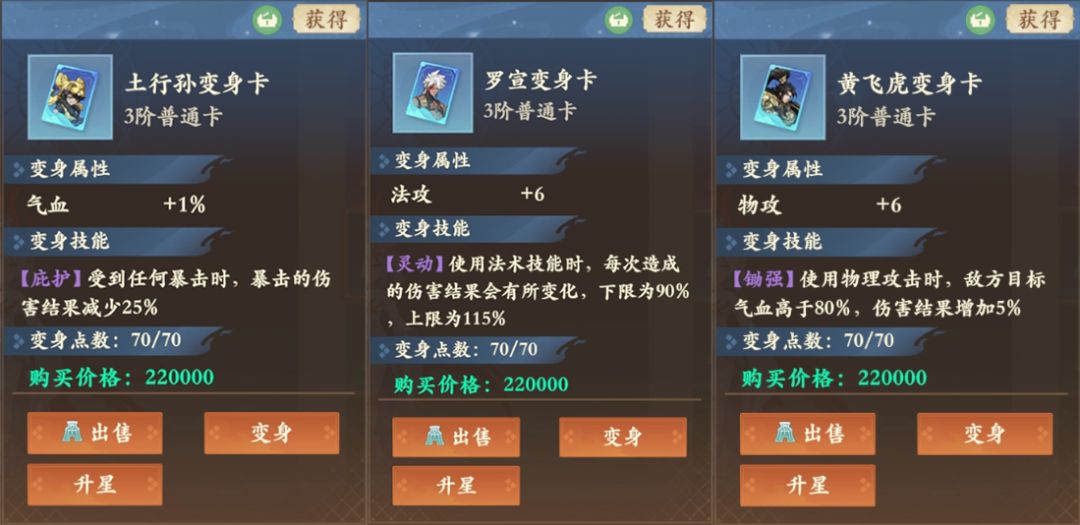 ▲变身卡升星