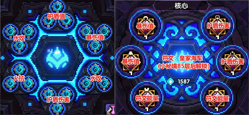 海游的毕业搭配为:9火系压制+9伤害增幅+9克制增幅