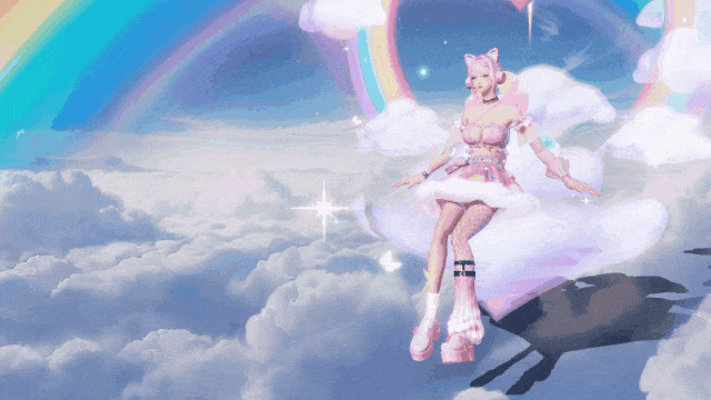 云朵载你入队,这也太可爱了!到达队伍,俏皮一跳,云朵衣摆和云朵双马尾都一Duang一Duang的!太萌辣!