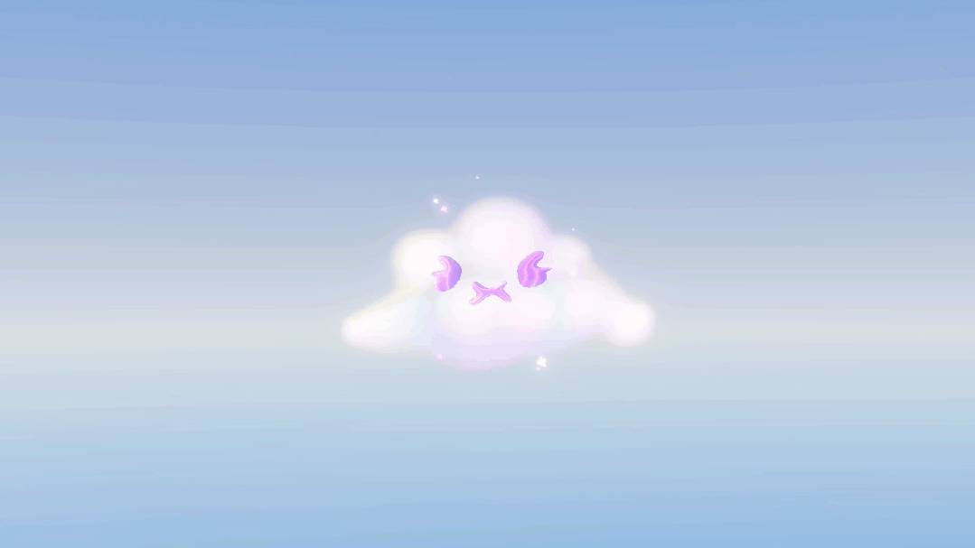 彩云彼端陈设还有独一无二的比心功能,可用于出生岛、空间,点击云朵进行比心互动,让我们乘着彩虹,梦与云共舞!