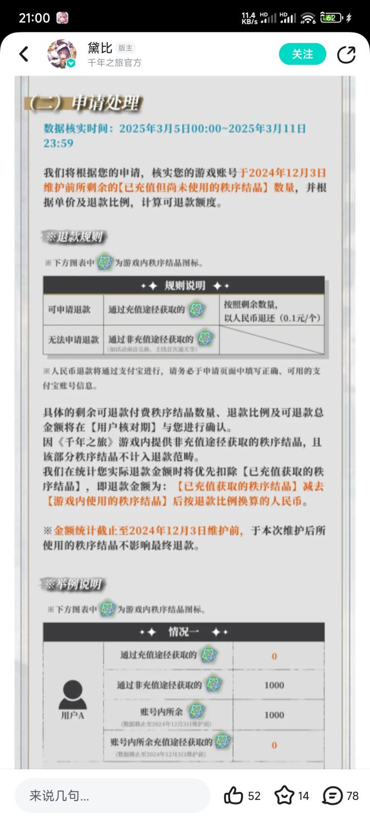 目前通过官方公告链接→充值获得的未使用的结晶10:1可以选择退款,走过路过不要错过