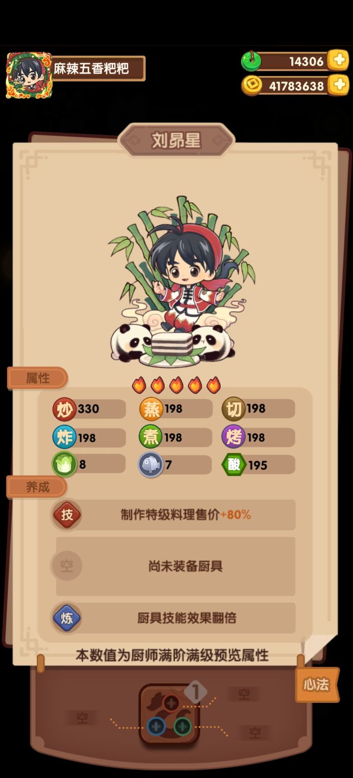 话说,后面会给刘昴星出个专属厨具吗?如果后面出个+技法+贵客率+暴击的厨具,感觉就不用考虑那么多了