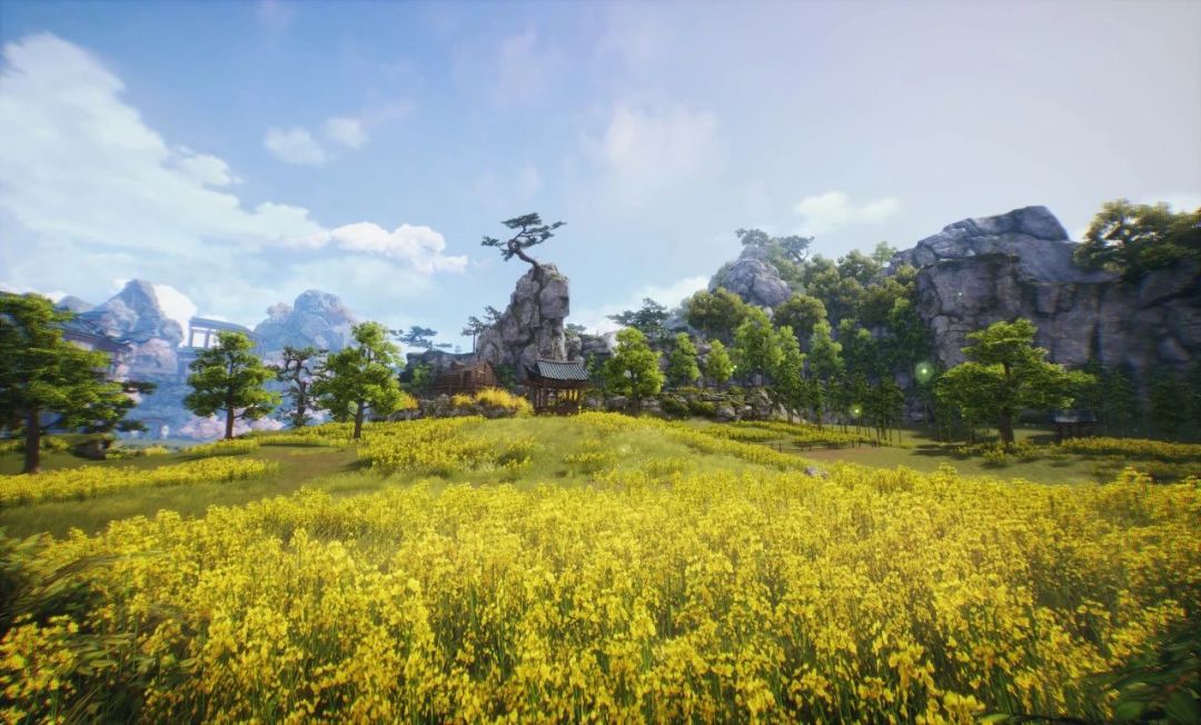 灵芝们日常做主线任务的时候,有留意到巴隆族在哪里吗?就在半月湖农场里面,周边还有一片片的油菜花田,圆顶卡通风格小屋,屋外炊烟袅袅,休闲安逸的田园风情。