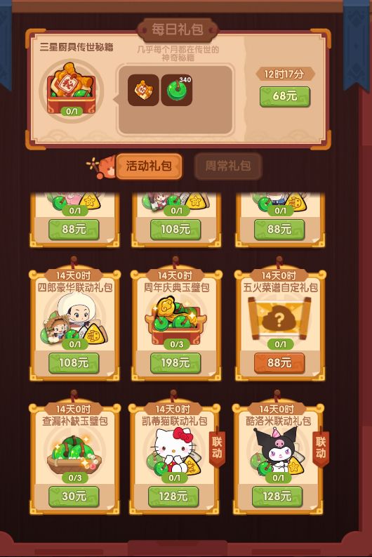 爆炒有一个🏆特点,也算是🌈优点:游戏中非联动和非星座礼包的厨师,在销售一段时间后会进入池子,不再单独售卖。这给了白嫖党获取“氪金礼包”的机会。
