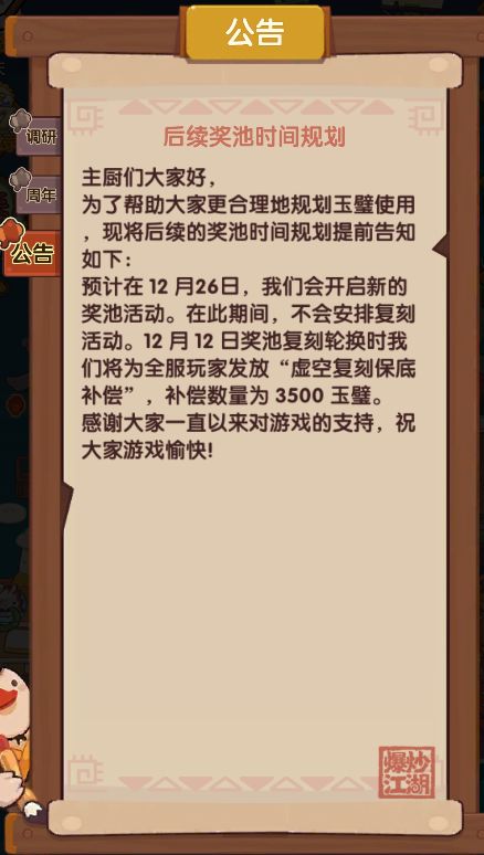 📌3.掌柜的重金悬赏传说厨具下落(早期主线似乎有提过传说厨具,不同于小当家传说厨具):消耗玉璧提升贵客金符文几率。