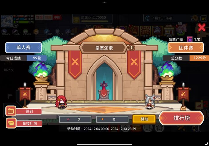 2,有两个高练度宠物,一个打通关一百分,一个第一次上的时候打99轮九十九分退出,第二次打一百分,总分299