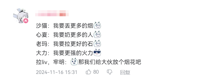 此前我们也聊过,当一款产品足够扎实,能成为玩家社交和相互整活的工具时,什么动漫、射击、PVP这些概念都被模糊了,取而代之的是独特情绪共鸣——或开心、或温情,我觉得这才是年轻人喜欢的流行文化,才是《卡拉彼丘》不断破圈的重要原因。