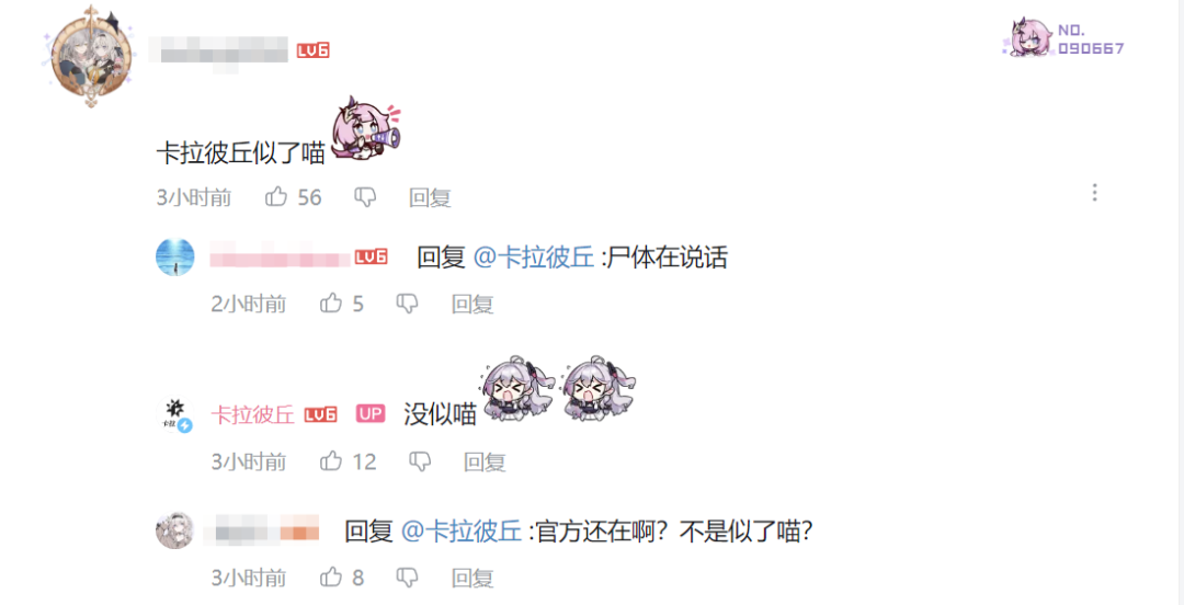 游戏全球上线后,不少国内玩家发现其国际服在皮肤投放、赛季战令、卡池机制、资源获取等方面,跟国服存在差异,并认为官方有不公平对待的嫌疑,于是就在游戏各大评论区「团建」,用他们之间流行的「喵言喵语」吐槽「卡拉彼丘似了喵」「再也回不到过去了喵」。