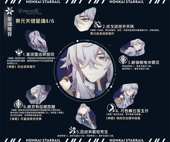景元0魂机制完整,星魂加成中比较关键的有4魂、6魂;