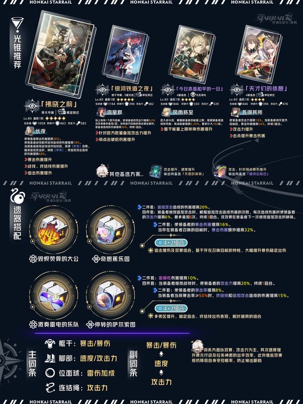 2、激奏+停转,初期固定配装,如果有一套词条很好的雷套可以选择不刷追击套,体力资源建议留给其他角色;