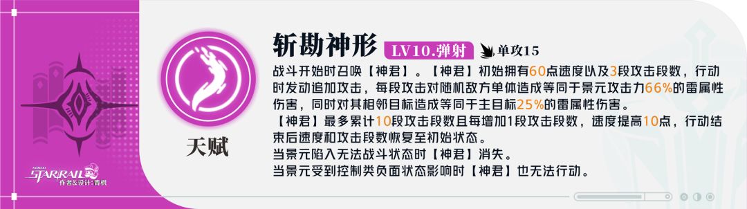 ●【神君】段数由景元的战技+终结技累积,段数增加时【神君】速度也会相对提升,实战中未满段数时可选择插入终结技提升段数;