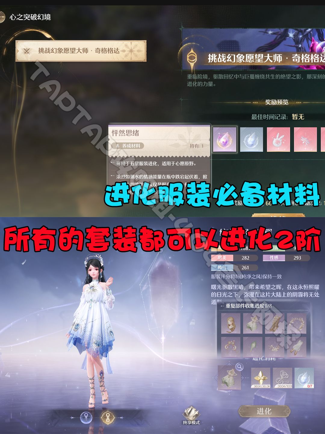 4.心之突破幻境:可以获得服装进化材料和一些祝福闪光部件。进化的服装更加好看~