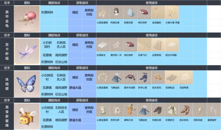 【无限暖暖】昆虫图鉴一览