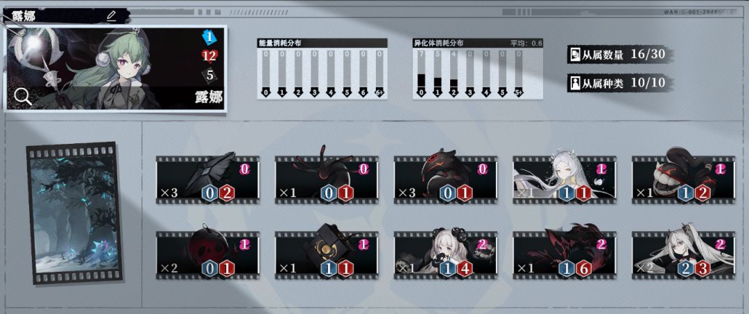 灰群系列和愫络合系列搭配,均属于[福利院]阵营,种族为[异化体]。编组内的多数从属可以根据“异化体”来获得属性提升,也可以通过各种简易条件获得更多的0消耗异化体从属。