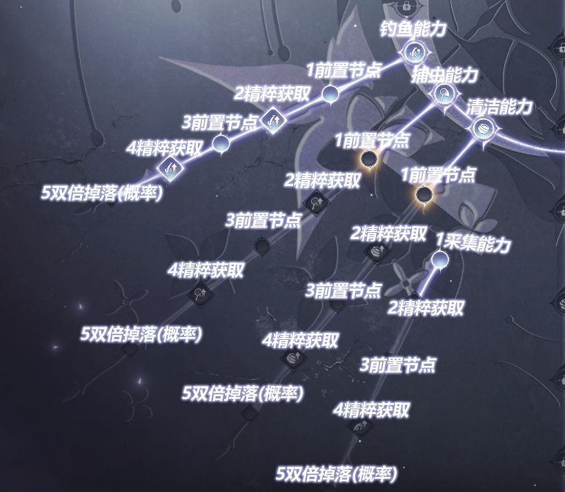 这个环节的提升,需要感悟前置节点后,才能继续感悟下一节点。科技树分为两个方向,共12个节点。