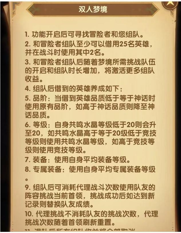 值得提一嘴的是:解锁梦境玩法后梦境玩法是可以再组一个队友的,并非绑定你双人推关的组队队友。区别在于梦境只能上2个 推关可以上5个可以根据自身情况思考是否需要换队友(?)