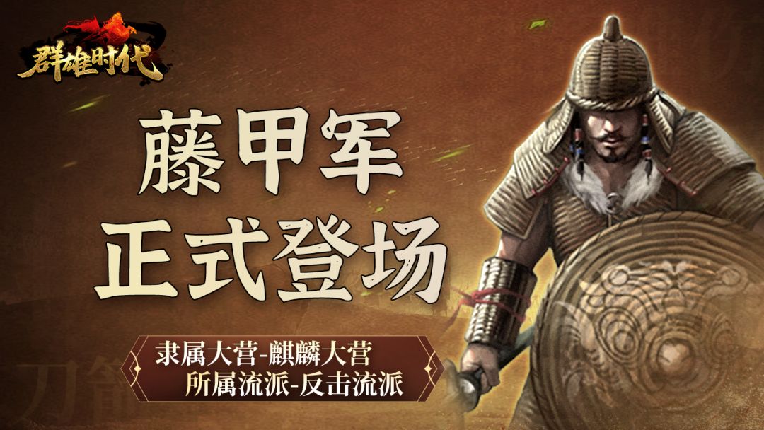 在今天的更新后,藤甲军也在《群雄时代》中正式登场!大大们可以选择【治所】-【兵营】来解锁特种兵噢!