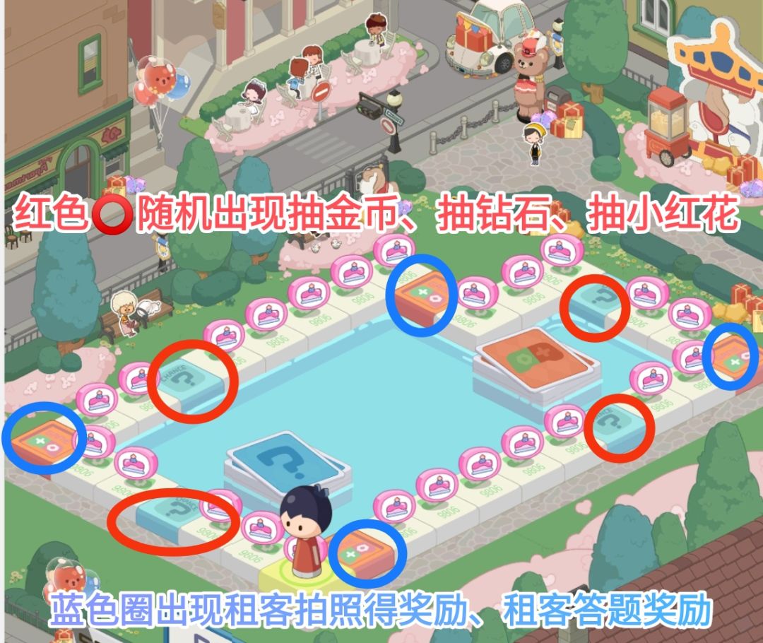 个别方格会有随机奖励和解决租客烦恼的奖励哦,请看下图: