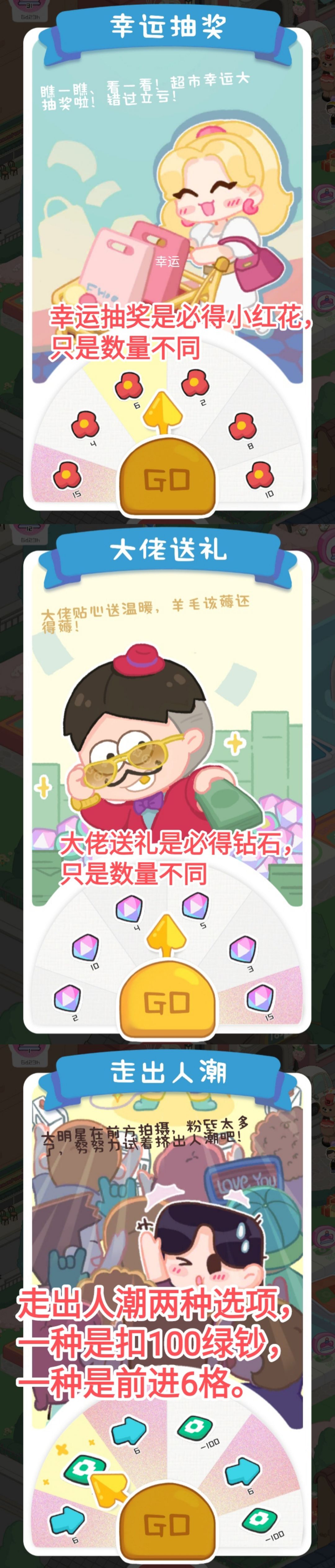 随机送小红花、钻石或者前进6格