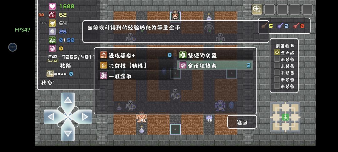 每次升级拿奖励优先拿金币,然后进入新房间换成经验,再升级拿金币,再换成经验继续升级,属性和特性蹭蹭蹭的就上去了。