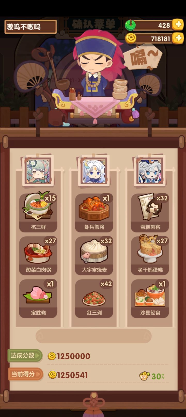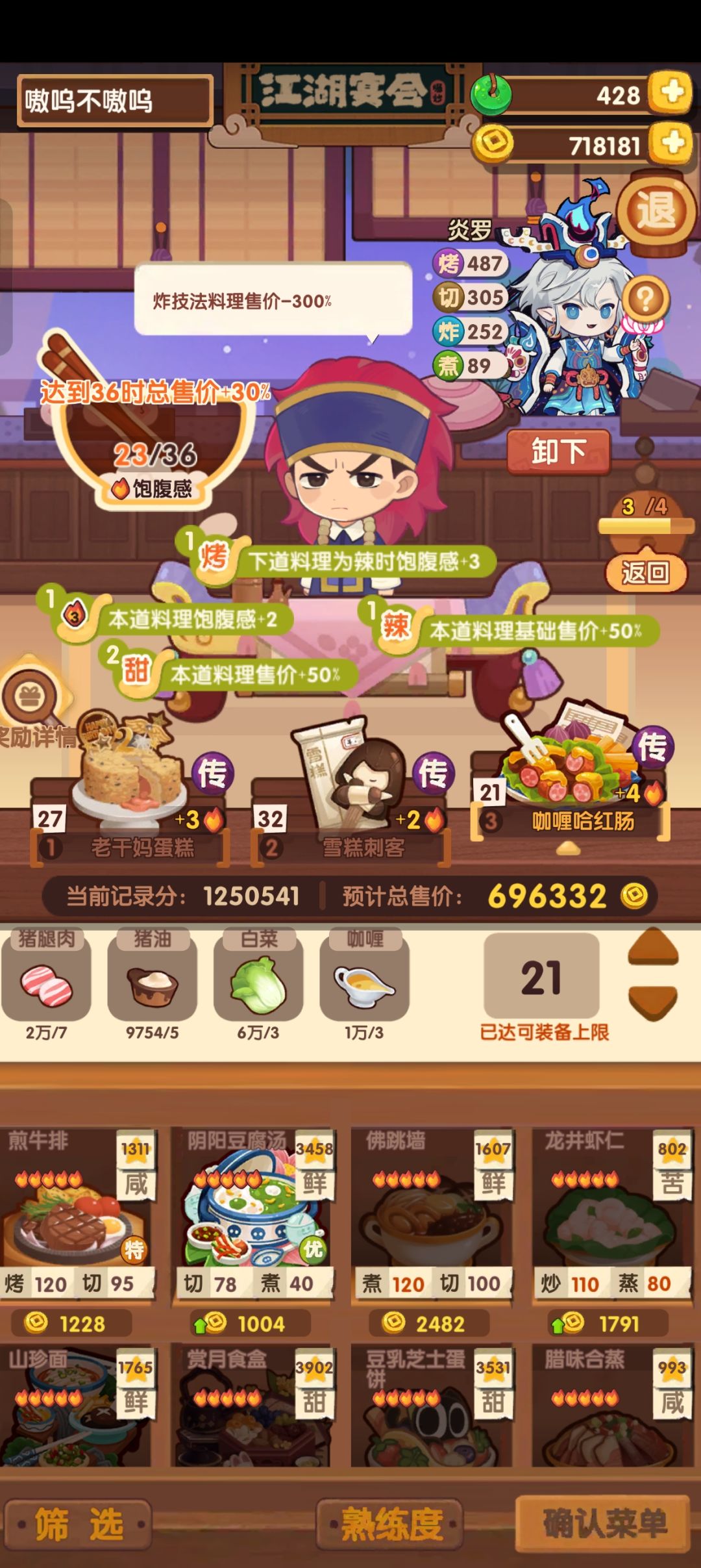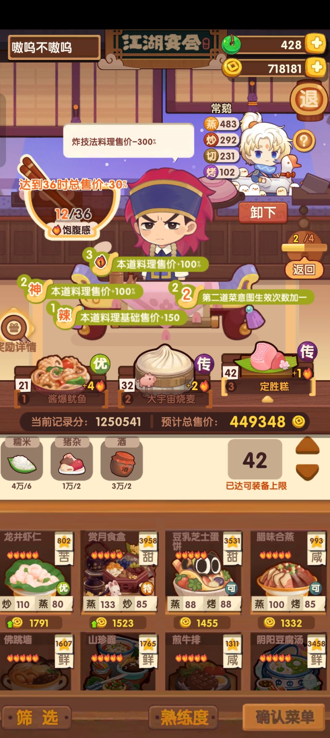第二阶段意图不推荐有皮姆酒等高价一火辣以外的玩家把buff叠一起,烧卖做传放二号位数值碾压然后其余位置吃另外两个售价是更优解,注意一号菜谱品级不要超过特,冬鸦可以金斩上鱿鱼,烧麦,定胜糕