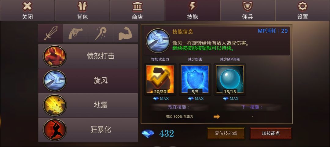 剑的技能全部满级