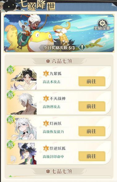 如果队伍承伤能力欠缺推荐挑战灯画妖,法师职业多推荐不灭战神,物理职业多则选九紫狐和悖逆妖狐。