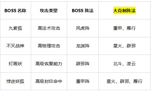 1、法攻型BOSS:九紫狐、悖逆妖狐