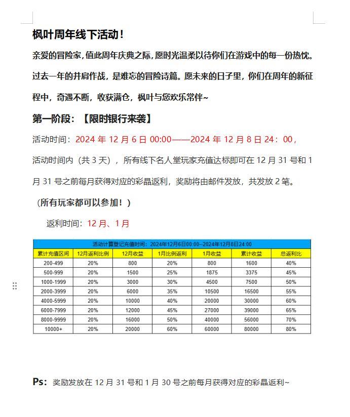 枫叶岛周年庆银行福利