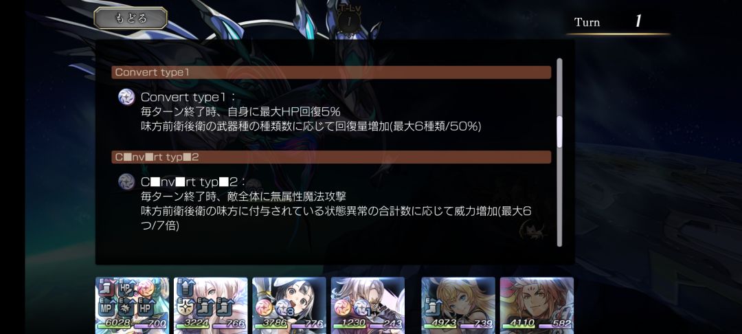 不建议多武器种(Convent type 1会根据我方前卫后卫的武器种数回血(最大6种/50%))