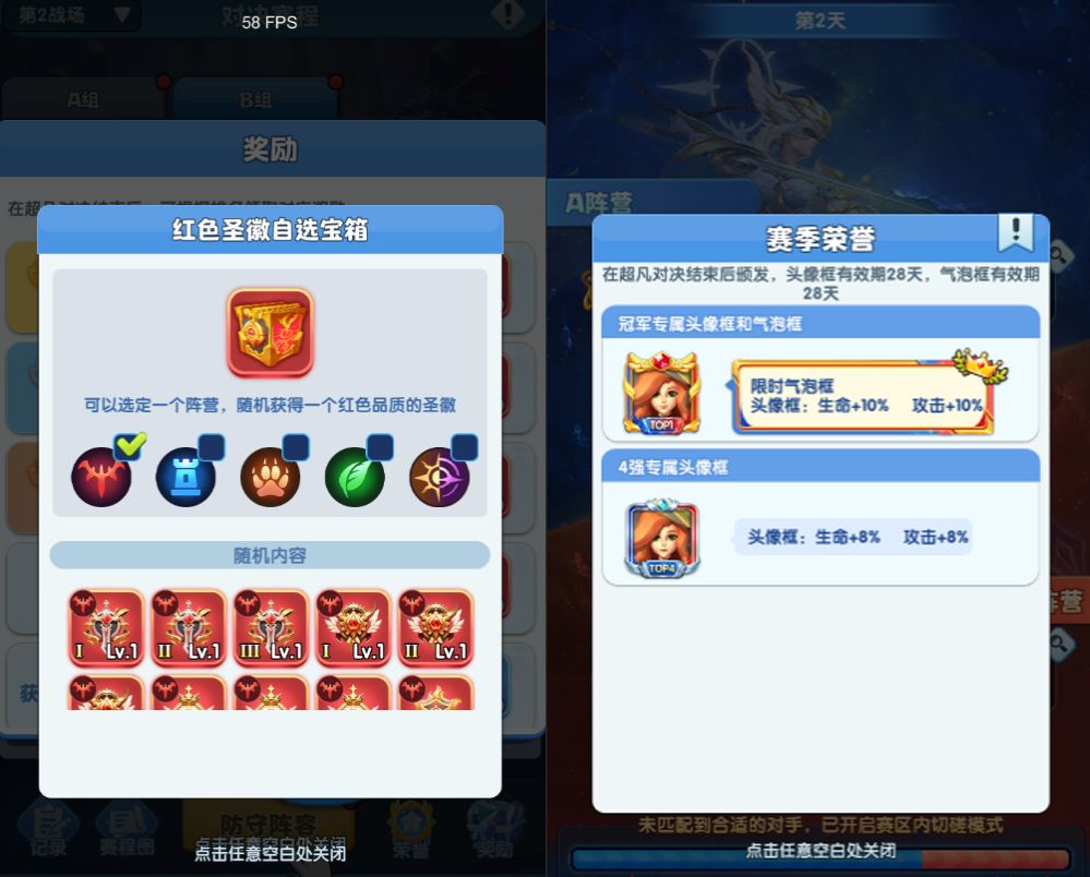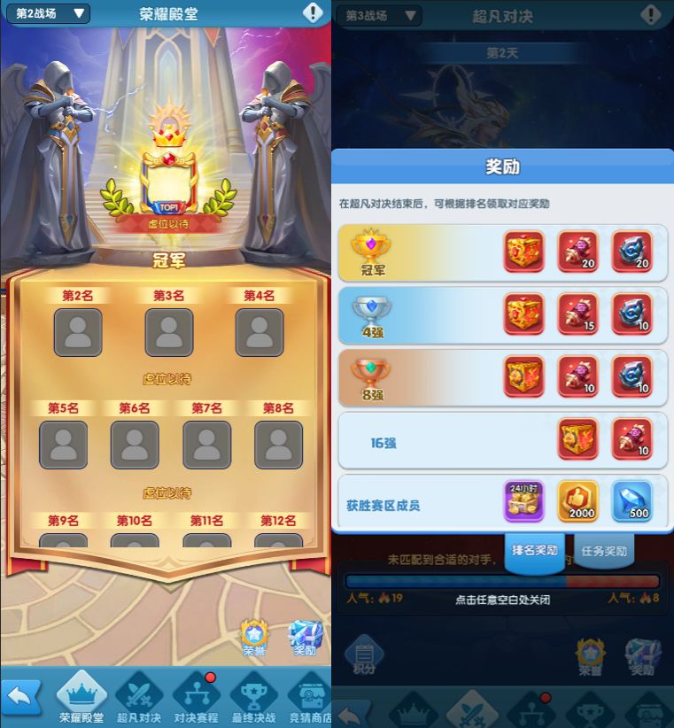 赛季结束时,获胜赛区的成员将获得胜利奖励,若为落单赛区内部切磋,该赛区成员都可获得胜利奖励!