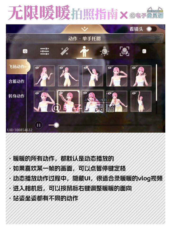 🌟有些宝子可能觉得不满足于给暖暖拍静态照片,那么暖暖拥有的动作搭配界面UI隐藏就派上用场啦,选好动作后会自动播放动作,再隐藏掉界面,这时候录屏,就会是纯净的漂亮暖暖啦。