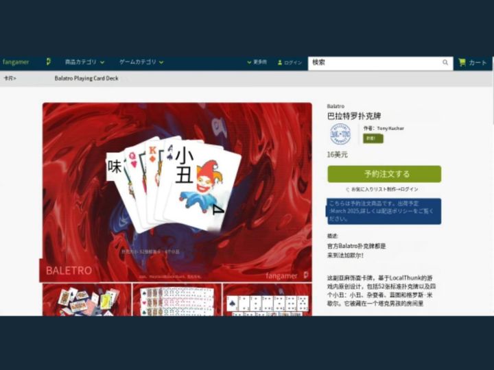 《小丑牌》实体扑克现已在Fangamer平台预售