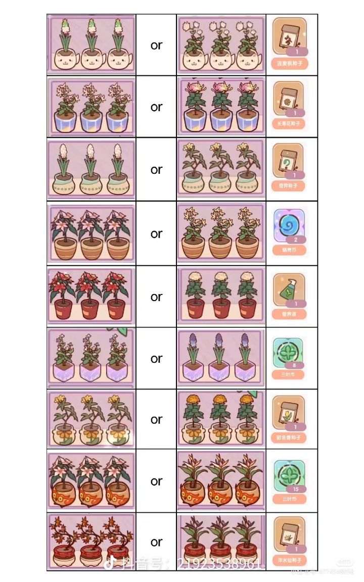 一开始以为奖励是随机的,后来发现固定的花盆会出现固定的奖励,就去搜了一下,原来真是固定的啊(・◇・)