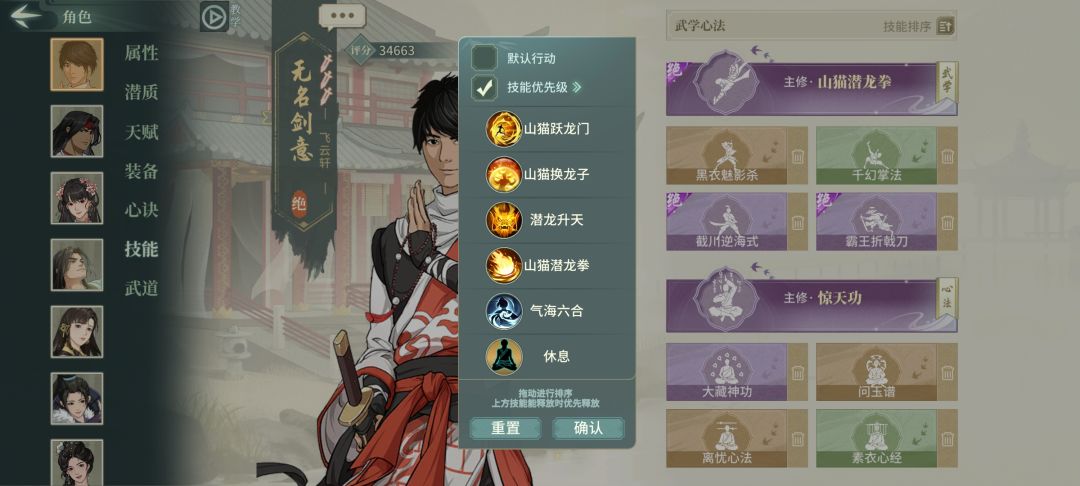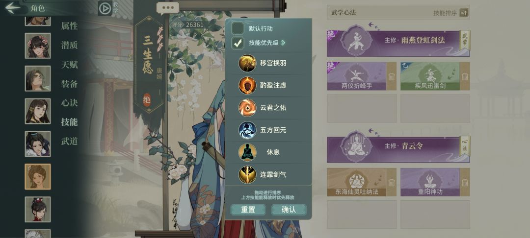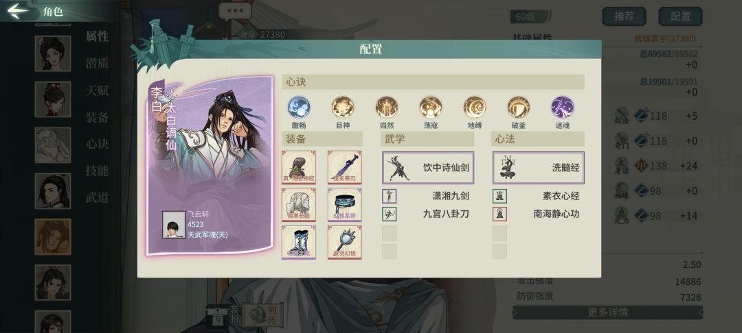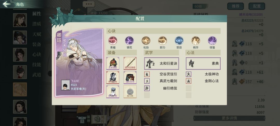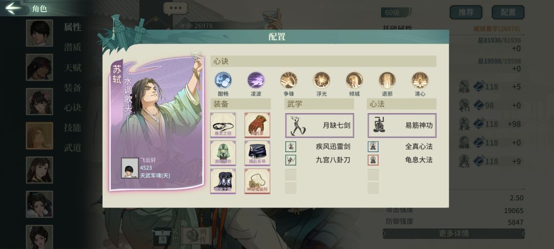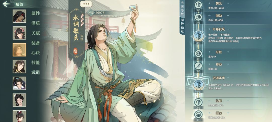 全身身法闪避苏轼128%+闪避率+双缥缈+鬼画符存经常活到最后。雁行鞋可穿轻身和可缥缈,最好缥缈