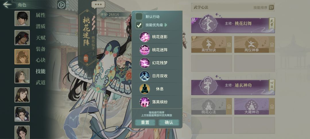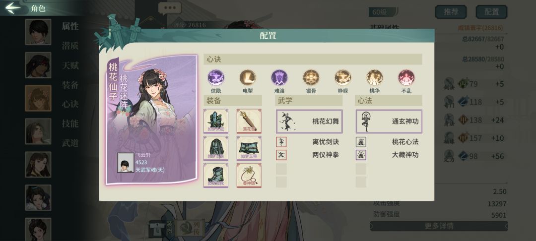 全定力满减伤桃花+侠隐,基本能撑到放两轮大招。因为如梦触发能-4回合基本都能触发2轮大招
