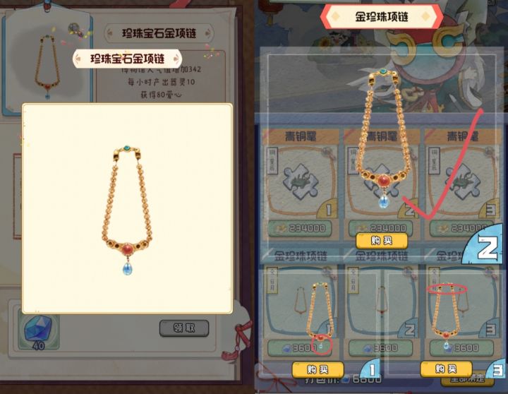 珍珠宝石金项链(小):深蓝色宝石比较大的,小的不是。项链上方有两段比较细。