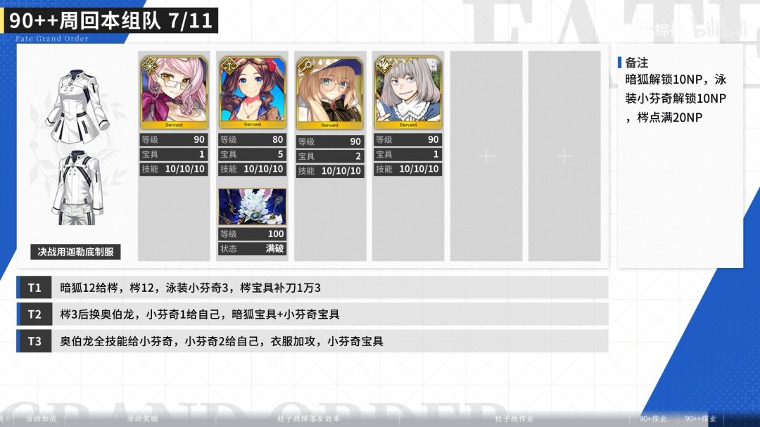 至于回合数就不要在意了,狂光炮可以勉强3t,只有基础的玛修在7-8t也很正常。