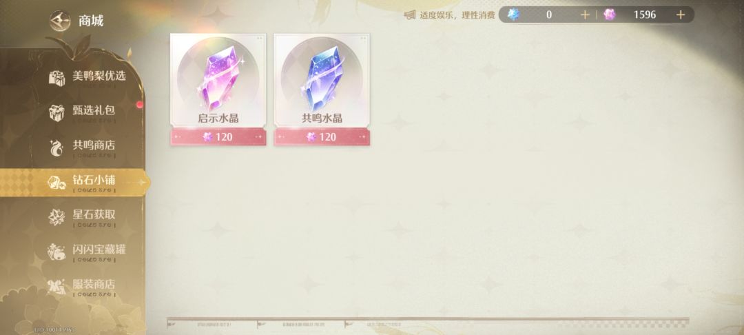 接下来是抽卡券,也就是启示水晶、共鸣水晶的购买价格12RMB=120无垠星石/钻石=1启示水晶/共鸣水晶