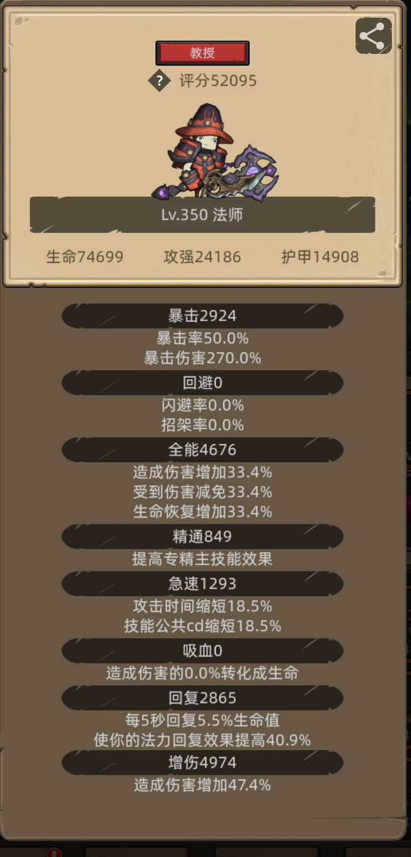 暴击2800,急速不需要,主全能副增伤,冲锋会死就多加点吸血,挂机不缺蓝,回复不要超过20%。