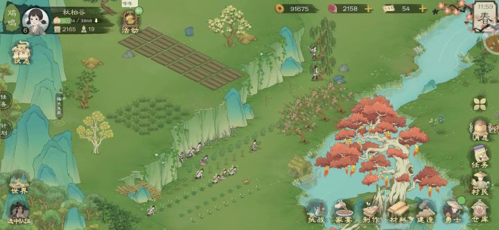 前期的一些建筑推荐建在谷底,比如草棚、灶台之类的,有地方就放,没地方再向上面建。二层优先建田,12个田先过度,解锁三层(陶先生家门口)再大批种田。