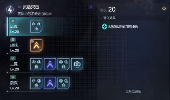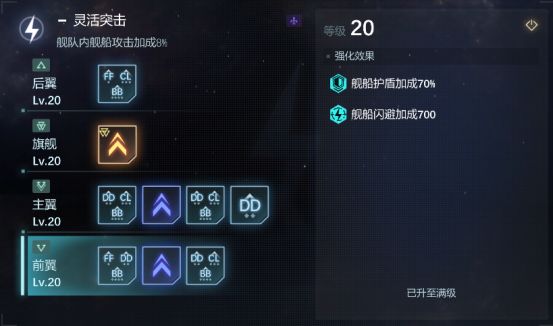 先快速浏览下墨菲斯的技能和阵型的加成,基本可以定位为攻防平衡的舰队。