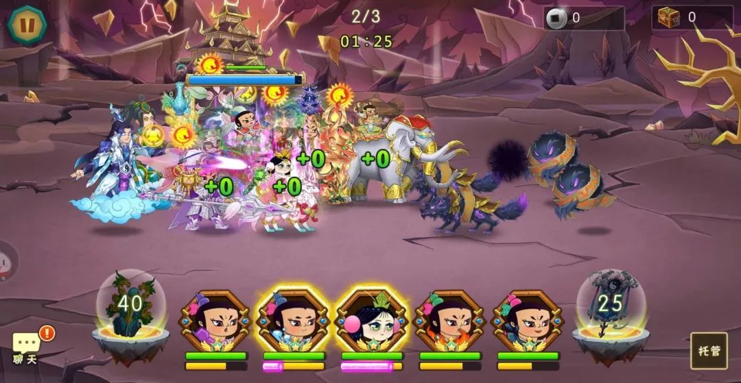 第一关:3只魔狼+2只毛球,開局直接放幡,结束4技能迅速放,毛球发动技能时托管放出盾牌,结束后1只增援毛球出场,1技能控制然后7技能,目的是拖延毛球附身时间,剩1只残血魔狼时平打即可,尽量拖延法宝冷却时间,无视毛球附身,进入下一关。(忘记截图,19-2无法重打,后续有时间再小号补图吧)