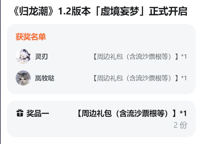 【已开奖】《归龙潮》1.2影像间幕「虚境妄梦」现已开启!