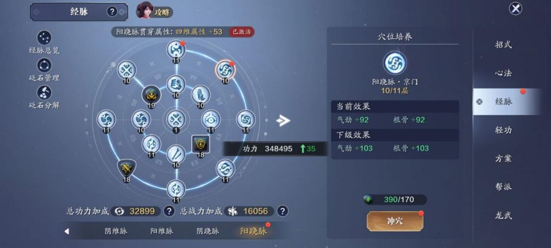 阳跷脉仅开放3个穴位升级,单个穴位提升35点功力,3个合计提升105点功力,不开放砭石升级。
