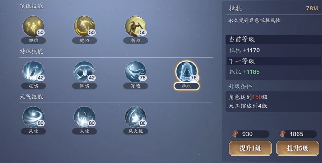 特殊技能穿透/抵抗各开放2级,带来120点功力提升,总计可以提升419点功力。